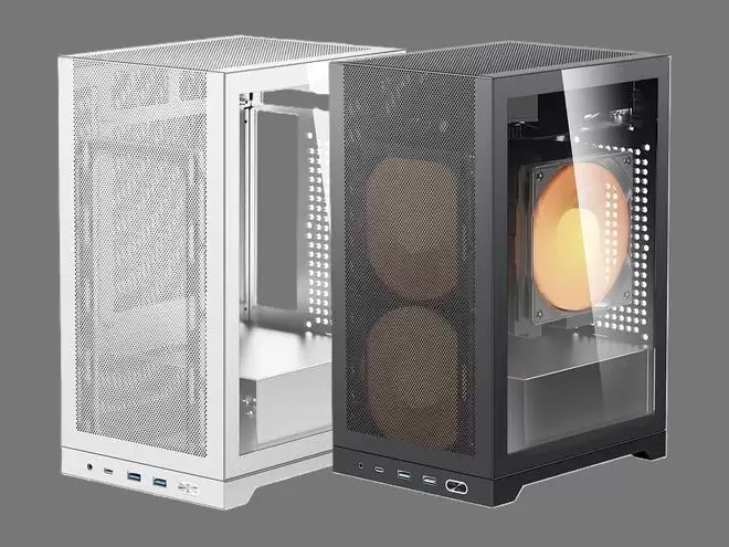 这款机箱兼容高度135毫米的塔式风冷散热器以及SFX或SFX-L规格电源。箱体前部支持安装2颗120mm风扇或1颗140mm风扇,后部则支持安装2颗80mm风扇。前置I/O面板提供了1个USB-C 10Gbps接口、2个USB-A 5Gbps接口,以及1个二合一音频插孔。