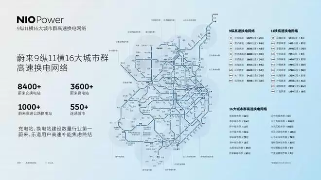 创业十一年,蔚来在充换电基础设施上累计投入约180亿元,是行业里建设充换电网络最为努力的公司。覆盖全国的8466座充换电站,其中高速换电网络已连通超550座城市,高速公路平均不到180公里就有一座蔚来换电站。在偏远却令人向往的“诗与远方”,蔚来仍坚持建设充换电设施,并向全行业开放——让电动车能去油车能去的一切地方。