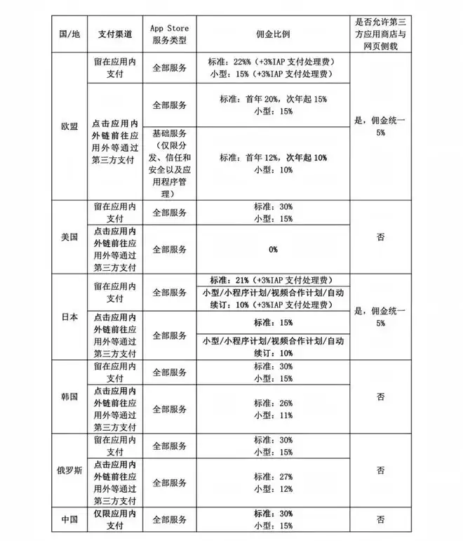 相较之下,中国目前仍严格执行封闭生态政策:所有iOS应用内的数字商品交易必须通过苹果最新支付系统,标准佣金高达30%,仅对年收入低于100万美元的小型开发者提供15%优惠费率,且严禁跳转至微信支付、支付宝等本土支付方式。