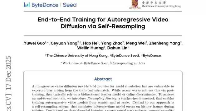 这项由香港中文大学的郭宇伟、字节跳动的杨策元等研究团队合作完成的突破性研究,于2024年12月发表在计算机视觉领域的顶级会议上。对这项研究感兴趣的读者可以通过arXiv:2512.15702v1查询完整论文。研究团队提出了一种名为"重采样强制训练"(Resampling Forcing)的全新框架,专门解决AI视频生成中的"健忘症"问题。