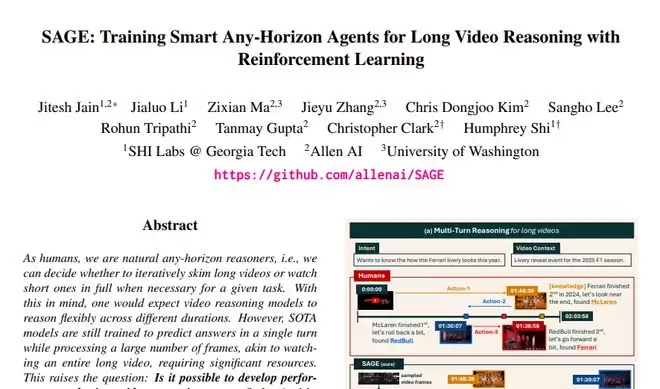 这项由Allen AI人工智能研究所联合佐治亚理工大学SHI实验室、华盛顿大学等多家顶尖机构共同完成的研究,发表于2025年12月的arXiv预印本平台(论文编号:arXiv:2512.13874v1),首次让机器学会了像人类一样灵活地观看视频并进行推理。