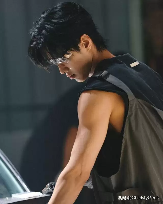 戏中,何与也毫不吝啬展现训练成果,微暗灯光下浮现的结实背肌线条与紧致腹肌。