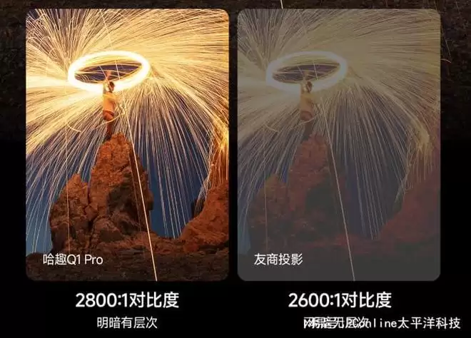哈趣Q1 Pro支持2800:1的高对比度,搭配AI臻彩画质引擎,能智能适配不同片源类型,针对色彩浓郁的影像内容会优化色彩饱和度与通透度,让画面的光影过渡更自然,暗部细节不丢失,亮部高光不溢出,让画面更具感染力;面对暗场较多的场景时,会精准增强暗部细节的呈现力,避免画面一片漆黑。而EngineX Pro全封闭光机,不仅让发光效率和解析力较上一代大幅提升,配合飓风散热5.0系统与IP5X防尘认证,还能从根源上避免灰尘进入光机导致的画面斑点问题,长期使用也能保持稳定的画质输出,耐用性大幅提升。