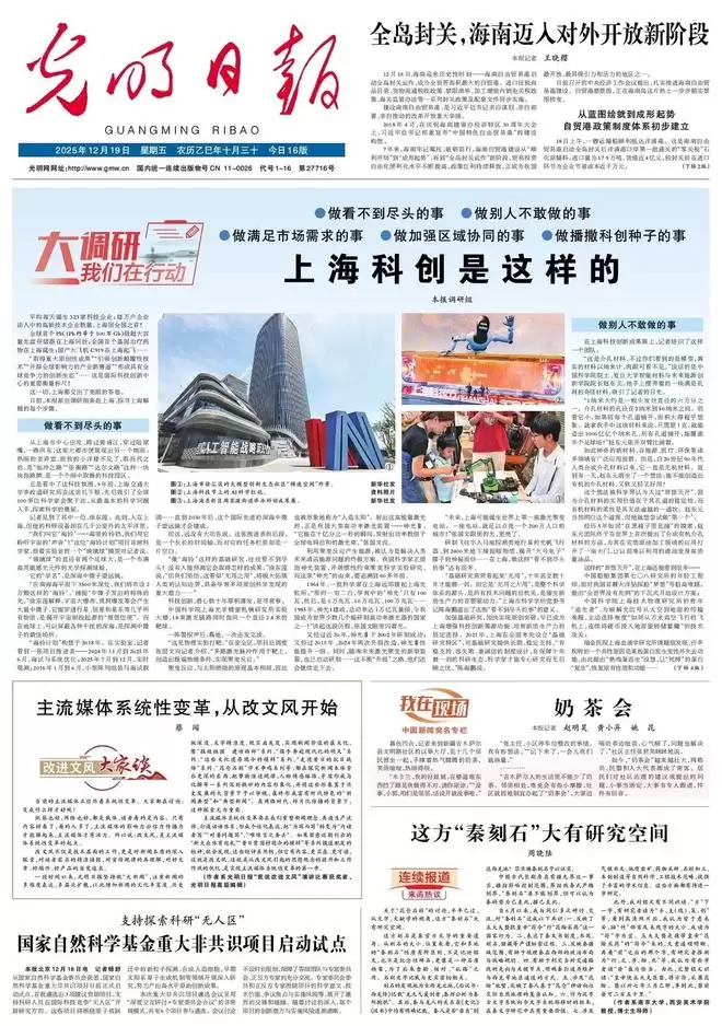 加强基础研究,加快实现原创突破,早已成为上海增强科技创新策源功能、培育新质生产力的坚定选择。2024年,上海在全国率先设立“基础研究特区”,对基础研究提供长期、稳定支持。“有稳支持、容失败、重诚信的制度设计,有保障十年磨一剑的科研生态,科学家才能专心研究而无后顾之忧。”陈海鹏说。