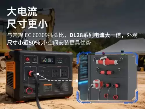 据了解,DL28 系列在保持紧凑结构设计的同时,实现了较高的载流能力。与传统 IEC60309 插头相比,其体积更小巧,有利于户外储能设备在有限空间内进行接口布局。