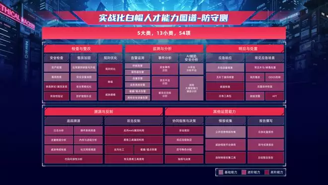 值得关注的是,本次发布的《图谱》,创新采用"知识图谱"架构替代传统"先分级再分类"模式,更清晰界定人才培养目标与职业发展路径。所有能力项均标注基础、进阶、高阶三级学习难度,通过颜色深浅直观呈现,为白帽人才自学、高校教学及企业培训提供科学指引。AI辅助攻防、大模型安全、安全设备绕过等新兴技术的纳入,也精准契合了当前网络安全实战攻防演习的技术发展趋势。