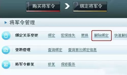 ①、首先,访问网易将军令官方网站(https://ekey.163.com/),在“管理与帮助”区域选择“解除绑定”功能。