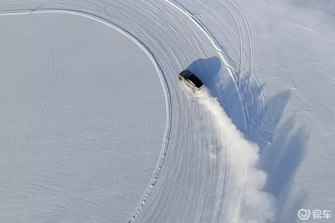 弯道前,轻打方向,渐进式转向系统让车头响应精准而线性,后轮转向悄无声息地介入,缩小转弯半径,车尾跟随稳健。在低附着力的冰面上,这种精准可控的转向手感赋予驾驶者挑战弯心的信心。出弯时,深踩电门,前后双永磁同步电机同时发力,800牛·米的扭矩喷涌而出,quattro系统与牵引力控制协同工作,动力被驯服地释放至冰面。车身如离弦之箭,却稳若轨道列车,3.4秒破百的实力在冰雪上展现为一种从容不迫的推进感。