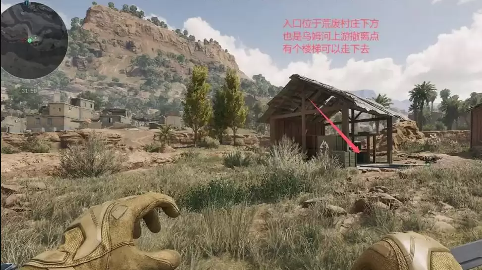 1、入口位于废墟村庄下方,也就是乌姆河上游撤离点附近,可以找到一个通往地下的楼梯。