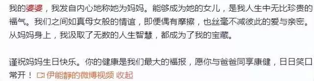 那伊能静也是个高情商的人,所以,婆媳两个相处起来十分愉快。伊能静曾发文写道,要发自内心地将婆婆当亲妈对待,即便婆媳俩偶有摩擦,但彼此间的爱与亲密丝毫不减。她还说在婆婆身上汲取了无数的人生智慧。