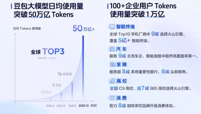 谭待表示,2025年已有超过100万家企业和个人通过火山引擎使用大模型服务,覆盖百余行业。