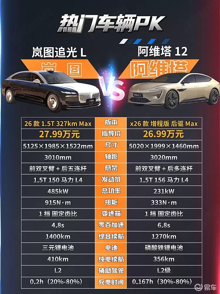 在竞争激烈的高端新能源汽车市场,华为系车型之间的比拼已进入白热化阶段,不同品牌间的“内卷”现象越来越普遍。作为中大型轿车领域的代表,岚图追光L与阿维塔12凭借华为智能化技术的强大赋能,在价格相近、定位相似的背景下,自然成为消费者关注的焦点。那么,究竟哪一款更值得入手?我们不妨从设计理念、功能配置、核心性能等多个维度深入对比一番。