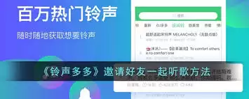 在这个数字化的时代,音乐早已深深融入了我们的日常生活,成为不可或缺的精神陪伴。而“铃声多多”这款应用,不仅提供了海量丰富的铃声资源,更能让你轻松与好友一同享受实时听歌的乐趣。那么,具体该如何使用它来和朋友一起听歌呢?