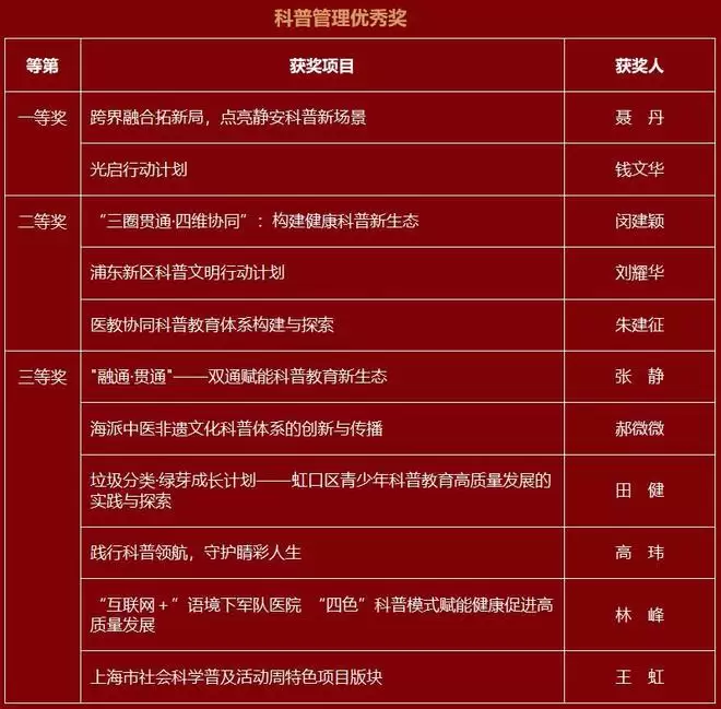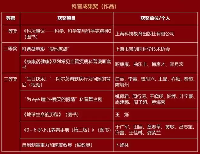 原标题:《上海科普教育创新奖颁发,首次设立“前沿科技成果科普奖”(附全名单)》