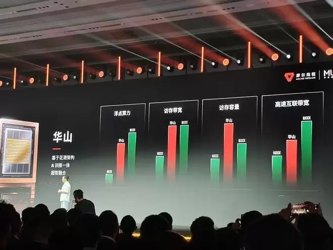 会上,摩尔线程公布了新一代GPU架构“花港”,AI训推一体芯片“华山”,用于游戏和图形渲染等场景的芯片“庐山”,以及“夸娥”万卡训练集群等产品。