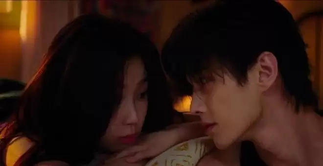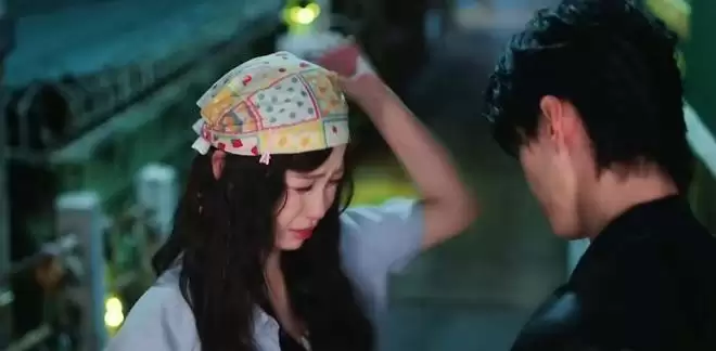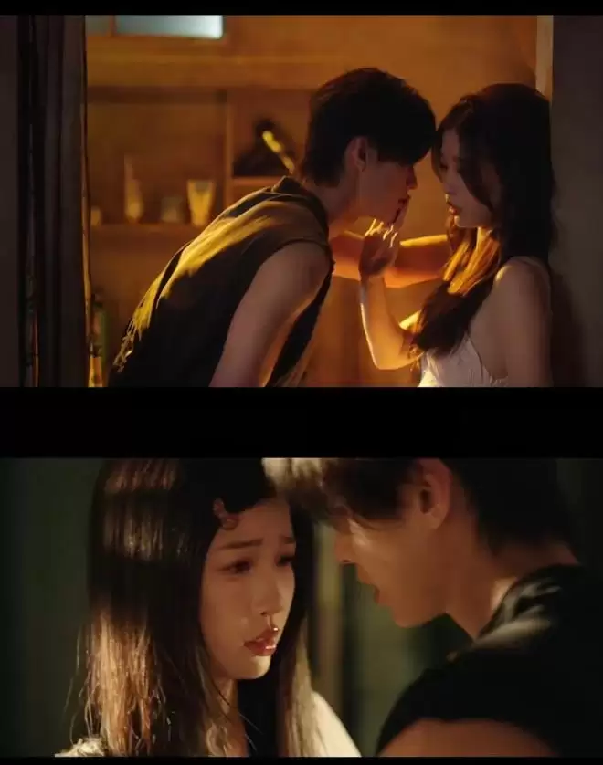 何与饰演的角色刚从车底爬出,双手沾满机油,脸上也抹得灰一道黑一道,竟直接捧起虞书欣的脸强行亲吻。