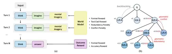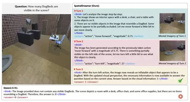 这一过程使模型从“被动观察”转向“主动目标导向的想象”,实现了在内部三维环境中,自主决定“看向哪里、看什么、如何推理”的能力。