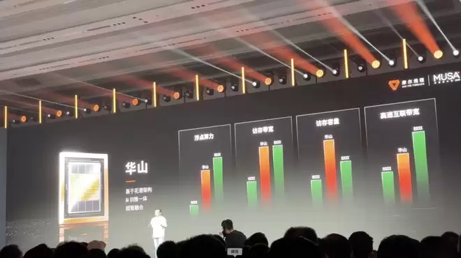 在算力方面,华山的浮点计算能力对标国际先进GPU产品,能够支撑主流大模型的训练和推理需求;在系统设计上,华山配备高带宽缓存和大容量存储,并支持MTLink4.0及多种内嵌互联协议,提升集群兼容性与扩展能力。