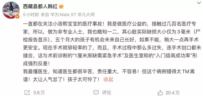 而今天,韩红发声,把很多人憋在喉咙里的那口气,直接点燃了。