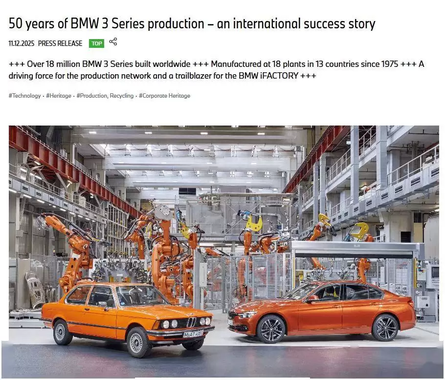 宝马3系全球产量突破1800万辆,50年生产技术迭代历程