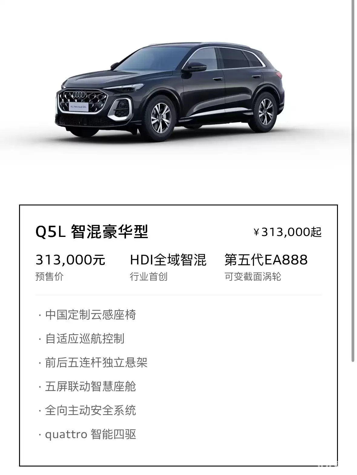 全新奥迪Q5L正式预售,31.3万起享豪华配置升级