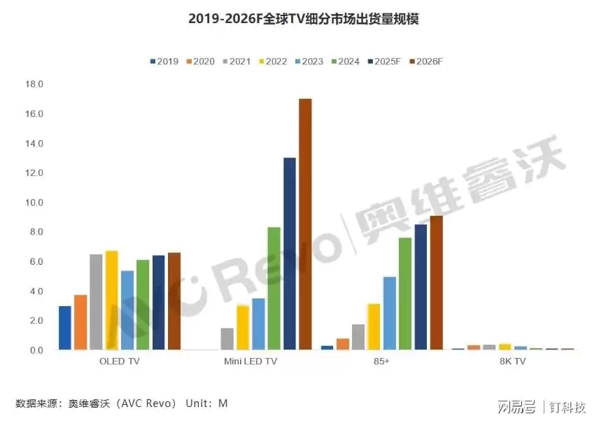 技术路线上,Mini LED与85英寸以上超大尺寸电视的增长,预计将因补贴政策退坡而放缓;OLED电视虽由韩国品牌主导,但增长空间有限;8K电视则持续边缘化。值得注意的是,RGB电视作为新兴显示技术,在多家品牌厂商的推动下,预计将于2026年开始起量,成为市场中的一抹亮色。