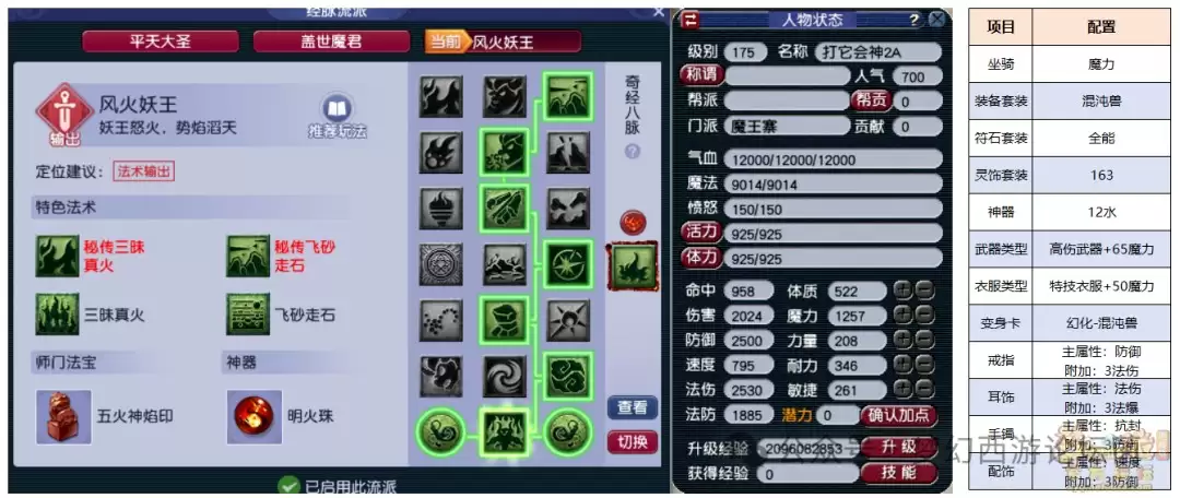 1. 全魔魔王装备套装:混沌兽精灵饰品属性——提供3法术伤害、3法术暴击、6点防御。这套方案强调极致的输出。通过牺牲部分抗性,将所有属性点投入到灵力上,换取恐怖的法术爆发力。建议选择2至3条增加法术暴击的精灵饰品,再配合魔王寨经脉的特殊效果,可以将法术暴击概率提升至15%。在玩家对战中,一旦同时触发法术暴击与神焰特效,造成的伤害将极具毁灭性。不过,这种极端的加点方式也意味着自身较为脆弱,需要队伍中有足够的封系或辅助进行保护。因此,它更适合与“双封双辅助”或“三封”这类控制能力强的阵容搭配。