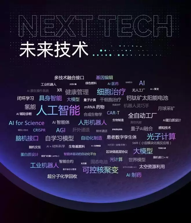 首日的闭门讨论延续到深夜;第二天是公开论坛,包括发布未来趋势报告,展示未来技术、未来人才等。大会热议的领域涵盖AI、光计算、生物设计、可控核聚变,以及人类文明的星际扩张。