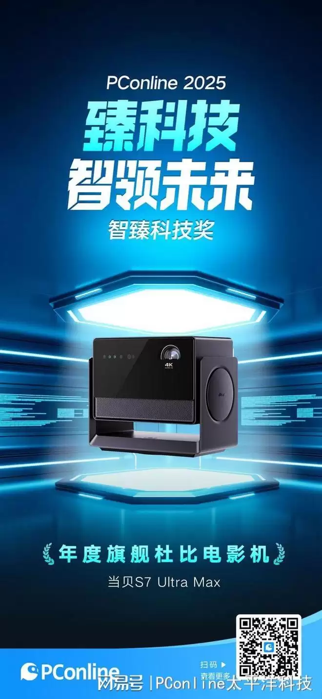 随着人们对于家庭娱乐体验的追求不断提升,投影产品也迎来了画质全面升级的关键一年。画质表现、色彩呈现、音响效果以及空间适应性,成为消费者选品的核心考量。而旗舰级投影仪也从单纯的“看得清”,朝着打造“沉浸式家庭影院”的方向迈进。在高端投影全面强化观影体验的趋势下,当贝 S7 Ultra Max 凭借自研的 ELRS 日光光学引擎,将高端投影的亮度表现、色彩还原与对比度提升到了全新水准,为行业树立了高质量家用投影的新标杆,并因此荣获 PConline 2025 智慧科技奖显示设备品类的<年度旗舰杜比电影机>奖项。