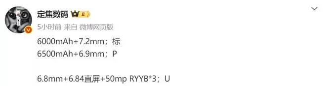 而且据爆料,Ultra版将搭载“5000万像素RYYB可变光圈主摄+5000万像素潜望长焦+1300万像素超广角”的三摄组合。