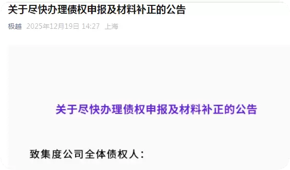 越界汽车近日发布公告,提醒债权人尽快完成债权申报及材料补正工作。公告显示,自债权申报启动以来,公司已收到大量债权人递交的申请资料,然而部分申报材料存在内容不完整或格式不规范等问题。为此,越界汽车特别发布了《债权申报指南》,明确要求债权人严格参照指南中列明的材料清单与规范流程办理申报手续。公司同时建议已完成申报的债权人重新自查已提交材料,若发现缺失或错误,请务必在截止日期前补充或修正。所有申报与补正工作都需在2025年12月26日前完成。
