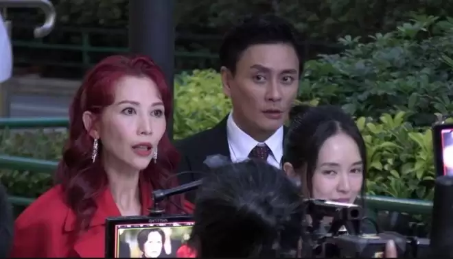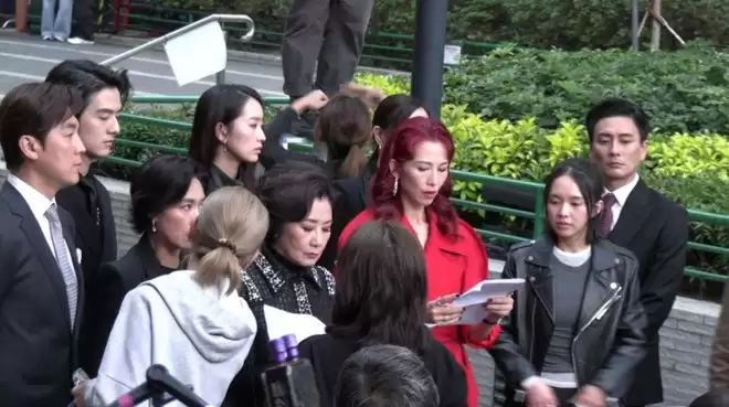 至于作为争产戏的主角,即汪阿姐的两个女儿——蔡少芬和朱茵随后也现身。染了一头红发、身穿鲜红色长外套的蔡少芬在人群中非常显眼,不过她似乎颇为紧张,开拍前一直拿着剧本不断背诵。