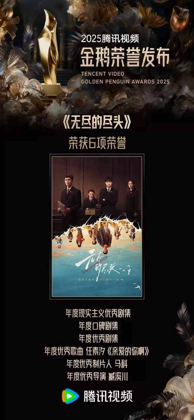 同样值得注意的是,当下共鸣正在取代以往的造梦逃遁,成为观众入场看剧的关键心理动机。斩获“年度口碑剧集”的《无尽的尽头》是一部现实主义题材剧,聚焦互联网时代越发令人重视的青少年犯罪问题。在无IP、无流量演员的情况下,该剧因选题犀利、内容干货实现了口碑突围,成为今年豆瓣国产剧评分TOP1,截至目前有13万人打出8.5的高分。