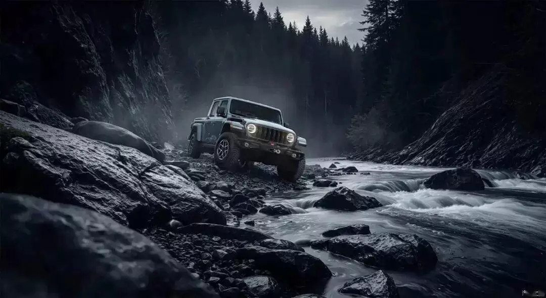 在外观设计上,Shadow Ops特别版进行了细致的升级。新车于格栅、发动机舱盖以及尾门等关键部位增添了熏黑装饰,营造出更为硬朗的视觉冲击。同时,翼子板和车灯采用了与车身同色的设计,使整车外观更显协调统一。新车还配备了黑色钢制保险杠,不仅提升了车辆的防护性能,也进一步强化了其越野气息。值得一提的是,车头部分还提供了原厂绞盘,具备高达3629公斤的拖拽能力,为越野爱好者提供了更多便利与保障。