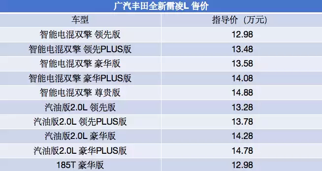 广汽丰田全新雷凌L上市:尺寸升级,增2.0L汽油版,12.98万起