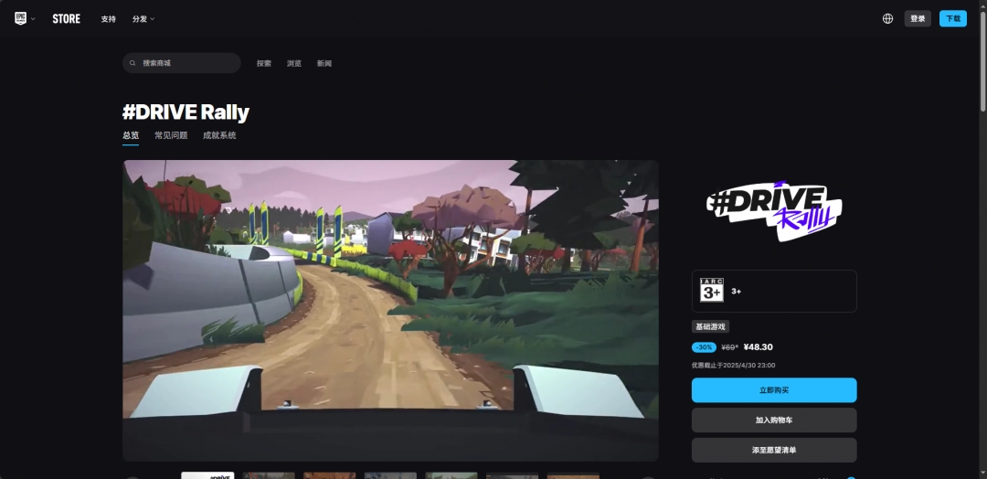 Epic Games商城的购买链接如下:https://store.epicgames.com/zh-CN/p/drive-rally-d500ef。