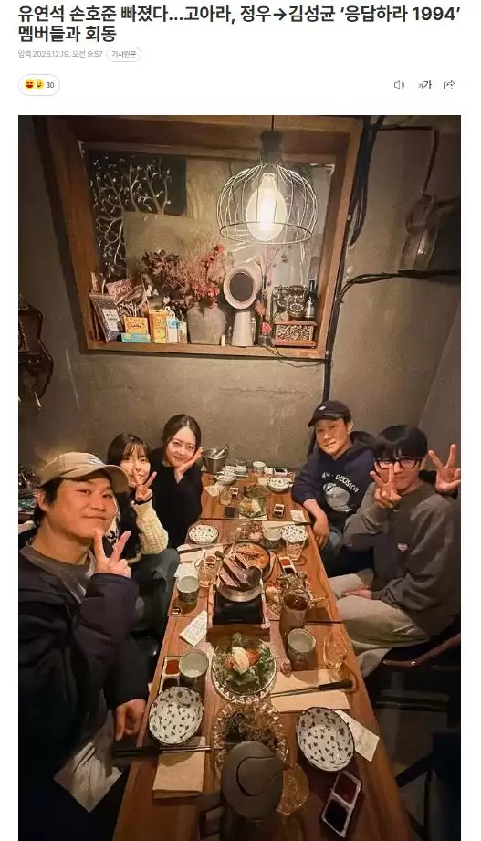 19日当天,演员高雅拉在社交平台晒出一张聚会合影。画面里,她与郑宇、金成均、车善璘、敏度希等《请回答1994》的主演们欢聚一桌,大家笑容灿烂,气氛温馨,仿佛回到了当年。