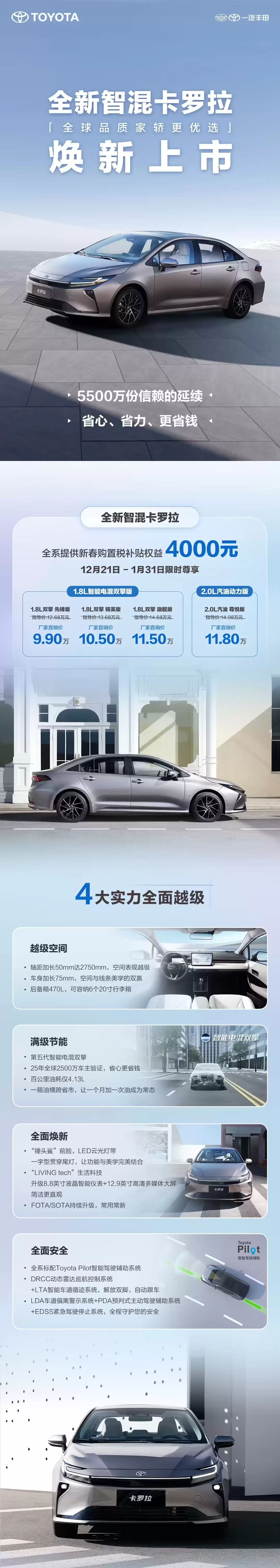 新款卡罗拉9.9万起售,一汽丰田厂家直销