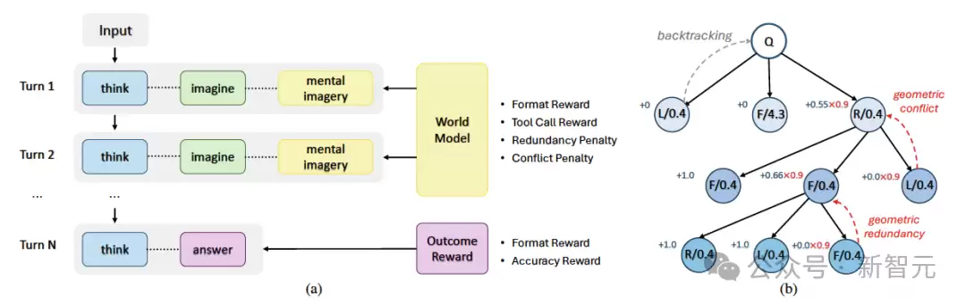 这一过程使得模型从“被动观察”转向了“主动目标导向的想象”,使其能在内部三维环境中自主决定“看向哪里、看到什么、以及如何推理”。