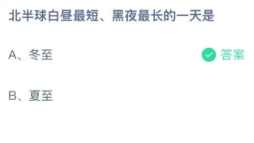 你知道北半球哪一天白昼最短、黑夜最长吗?支付宝小鸡课堂开课啦!每天花一分钟答题赚饲料,喂喂小鸡就能贡献爱心!既轻松又充满意义!2025年12月21日蚂蚁庄园的小鸡课堂题目正确答案是【冬至】,北半球白昼最短、黑夜最长的一天是冬至。