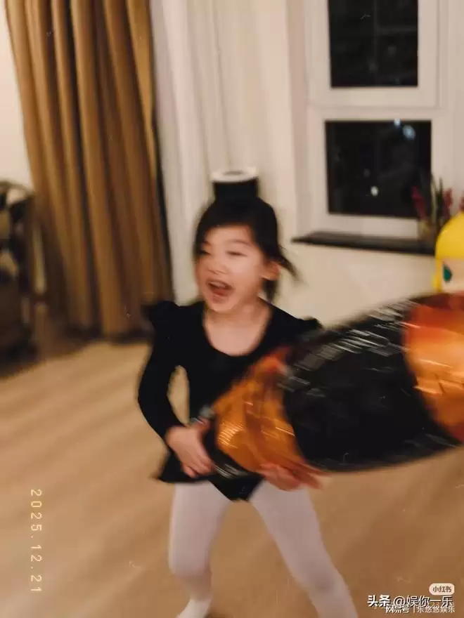 她的小女儿穿着练功服,抱着气球在屋里疯跑,小身影一晃一晃的,朱珠看女儿的眼神,那叫一个宠溺,温柔得能掐出水来。