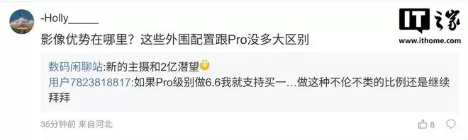 随后有用户在评论区提问:“影像优势具体在哪儿?这些外围配置和Pro版差别似乎不大。”博主回复道:“关键在于新主摄以及两亿像素的潜力。”另一名用户则建议:“屏幕能不能再大一些,比如做到6.9英寸?”博主反问:“6.71英寸的尺寸兼顾手感,难道不好吗?”