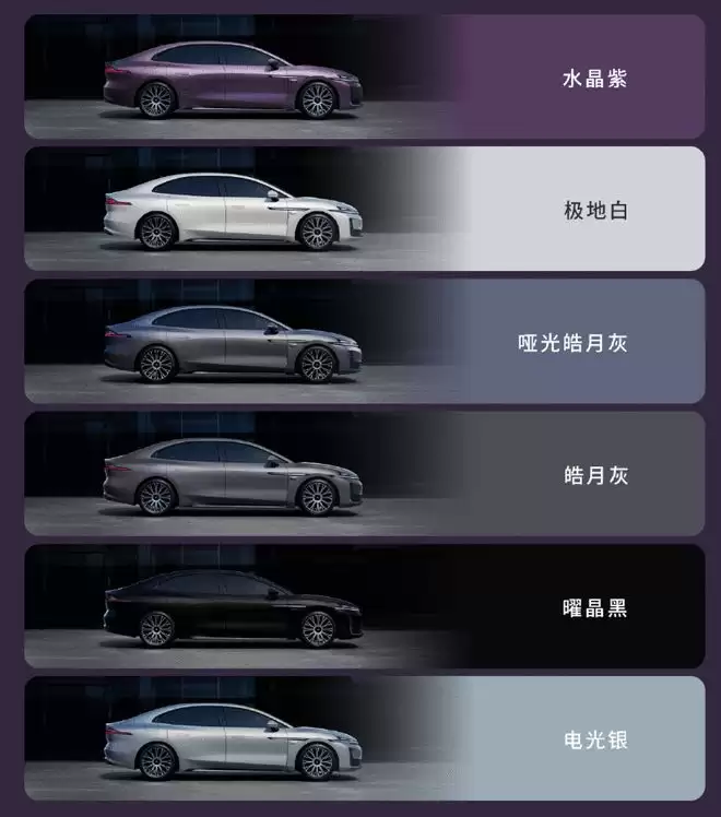 新车基于山海架构设计,车身尺寸为5130/1966/1500mm,轴距达到3020mm,是一款标准的中大型轿车。同时,新车搭载了环绕式星环光带,辨识度更高。在前灯组设计上,新车也进行了创新,可通过翻转效果呈现行驶、智驾和停车三种状态。为满足用户需求,新车在配色方案上提供了水晶紫、极地白、哑光皓月灰、皓月灰、曜晶黑和电光银。轮毂方面提供20英寸12辐涡扇式轮毂和20英寸7孔碟式轮毂可选,后者目前参与盲订即可获赠。