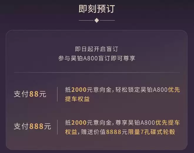 12月22日,我们从最新消息获悉,昊铂品牌旗下全新中大型轿车昊铂A800正式开启盲订活动。目前参与盲订可享88元抵扣2000元意向金优惠,并锁定优先提车权益。同时,支付888元不仅能尊享优先提车特权,还可获赠价值8888元的限量7孔碟式轮毂。昊铂A800定位全新中大型轿车,搭载1.5T增程动力系统。在智能功能上,新车配备了华为乾崑ADS 4(参数丨图片)辅助驾驶系统以及鸿蒙座舱HarmonySpace 5,预计在今年年底新车将正式上市。