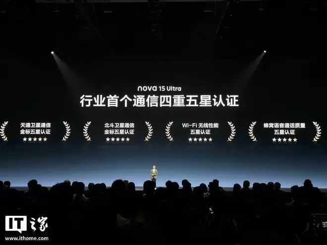 12月22日,华为在北京举行nova 15系列及全场景新品发布会。会上,华为终端BG首席执行官何刚正式宣布,华为nova 15 Ultra手机获得了行业首个通信“四重五星”认证。