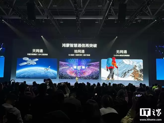 据介绍,鸿蒙智慧通信技术再次取得突破,实现了“天网通 + 地网通 + 无网通”的全场景覆盖。