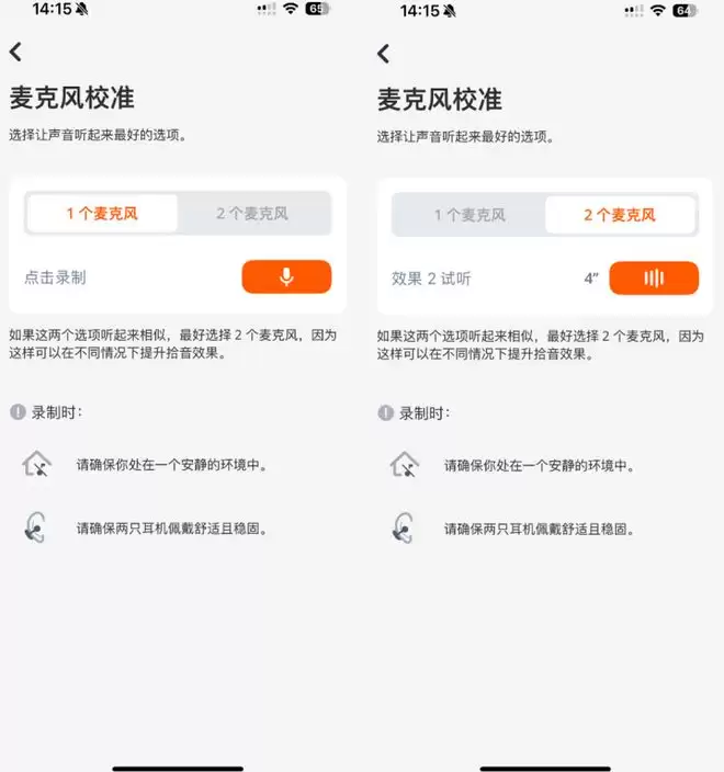 JBL SOUNDGEAR CLIPS琉璃扣每只耳机佩戴两个麦克风,我们可以选择拾音方式是单声道或者双耳立体声。并且在JBL Headphones App中能进行1个或者2个麦克风的校准测试,来适配我们不同的耳机佩戴角度,让通话更加清晰。