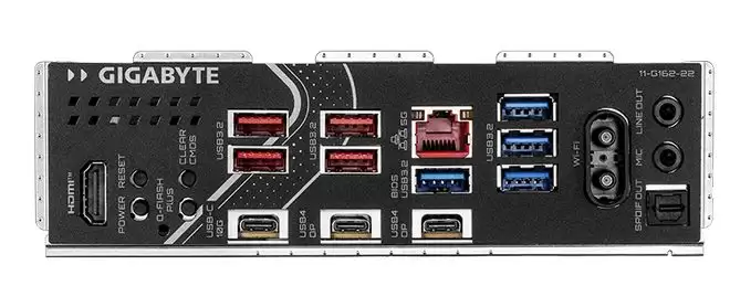 后置接口: 2 个 USB-C 40Gbps,1 个 USB-C 10Gbps,4 个 USB-A 10Gbps,4 个 USB-A 5Gbps,1 个 HDMI 2.1 TMDS 接口,一对 Wi-Fi 天线插座,1 个 S/PDIF 光纤输出口,以及 2 个 3.5mm 音频插孔。