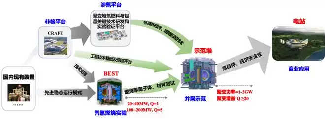 作为“中试平台”,BEST将重点攻克三大挑战性问题:材料与等离子体-壁相互作用(PWI)物理,验证全钨壁在长脉冲、高能量通量下的使用寿命与性能稳定性;实验包层模块(TBM)的性能验证,为商业化聚变堆的能量提取与氚增殖提供关键数据;氘氚燃烧等离子体的能量与粒子排出,优化偏滤器系统的设计,确保能量高效排出且不损伤装置。这些研究成果将直接服务于聚变新能提出的“三步走”战略:以BEST为基础,推进聚变工程示范堆(CFEDR)建设,最终实现首个商业聚变堆的落地,目标在20年内让聚变能实现全球商业应用。