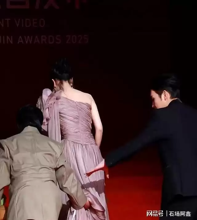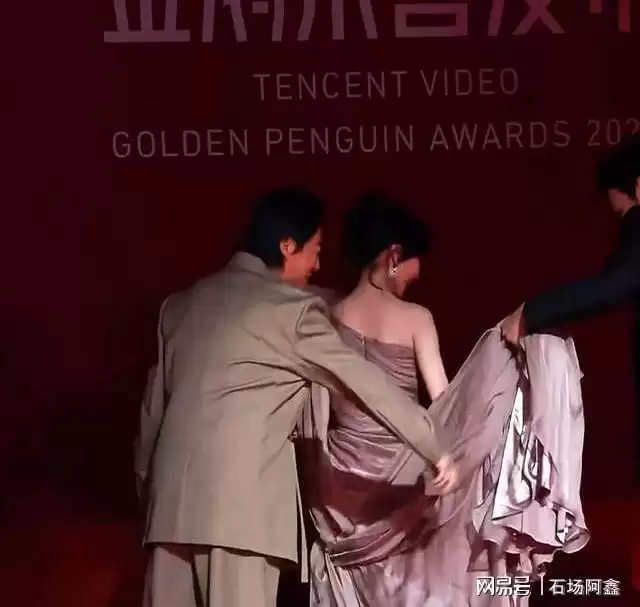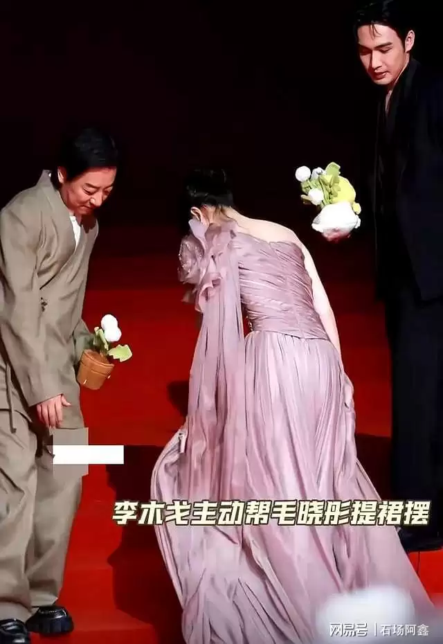 李木戈作为导演,显然非常关心他的演员,立刻伸手拎起她的裙摆,给予帮助。